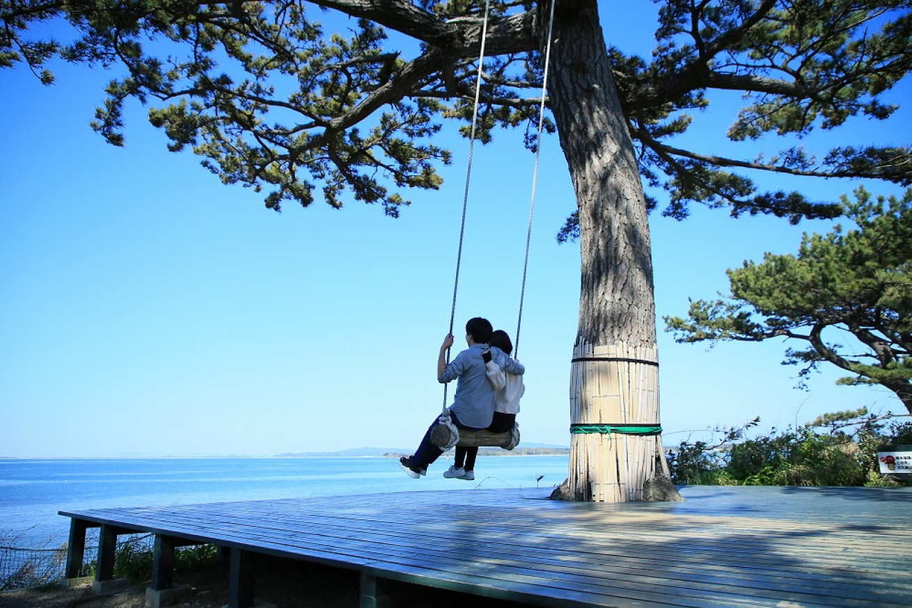 東港にほど近い場所にあるサンライズビーチの「キッズアドベンチャー」から高台へと階段を登ると大きなブランコが見えます。大木にロープで結んだ素朴な作り。目の前の海に向かって漕ぎ出すと、爽快感が味わえます。ちなみに別名「恋人のブランコ」。カップルで乗ると幸せになるんだとか。