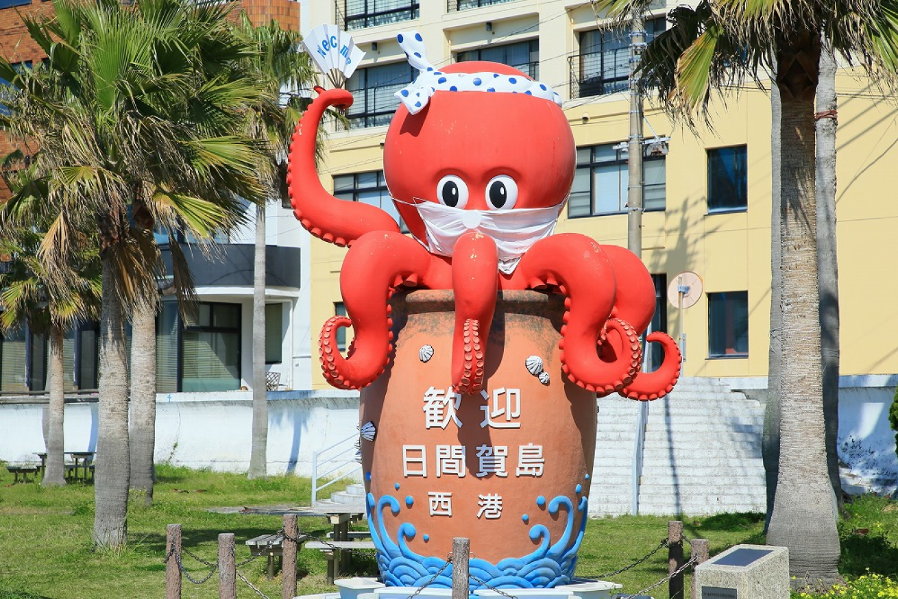 日間賀島西港に上陸すると早速迎えてくれるのがタコのモニュメント「にっしー」です。