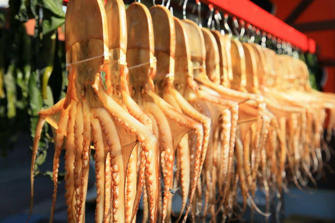 日間賀島で獲れたばかりの新鮮なタコ、穴子、波美貝(ミル貝)など魚介類の干物や海産物を販売しているお店。タコの干物教室もおこなっております。